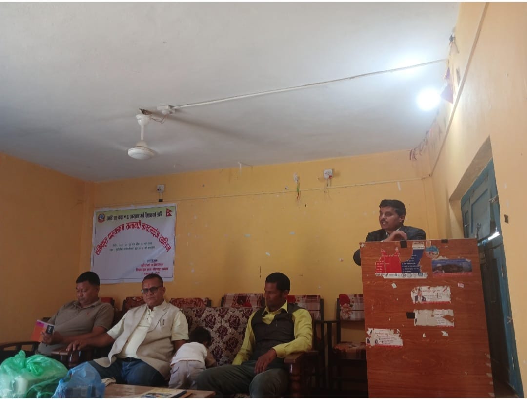 शुक्रबार पुर्विचाैकि गाउपालिका कार्यबाहक अध्यक्ष बल बहादुर खड्काकाे सभाध्यक्षमा संचालन भएकाे कार्यक्रममा वडा नं. ७ का अध्यक्ष प्रेम खड्का ,प्रशिक्षक राम बहादुर भण्डारी लगायतकाे आतिथ्यतामा कार्यक्रम गरियकाे थियाे ।
