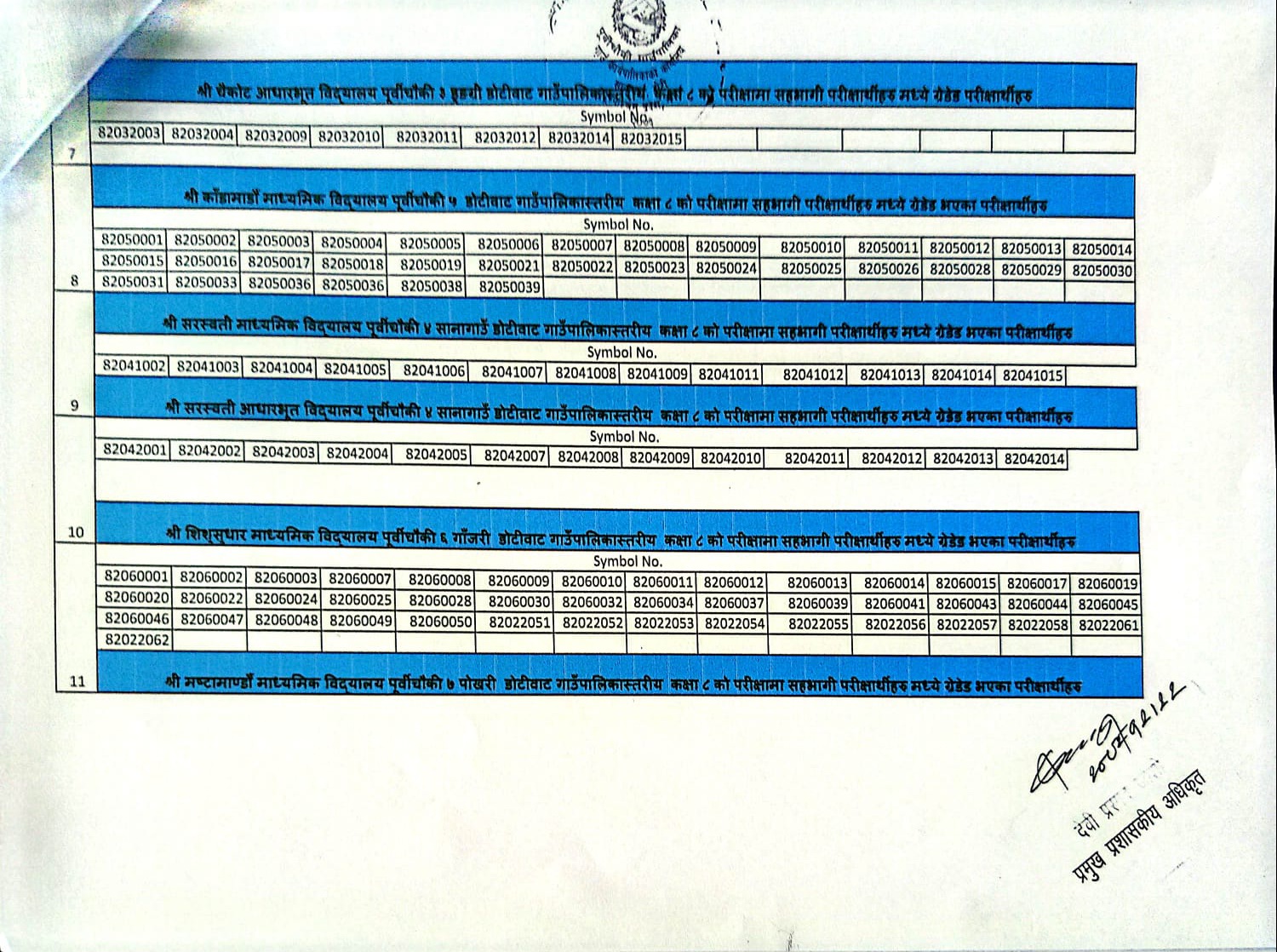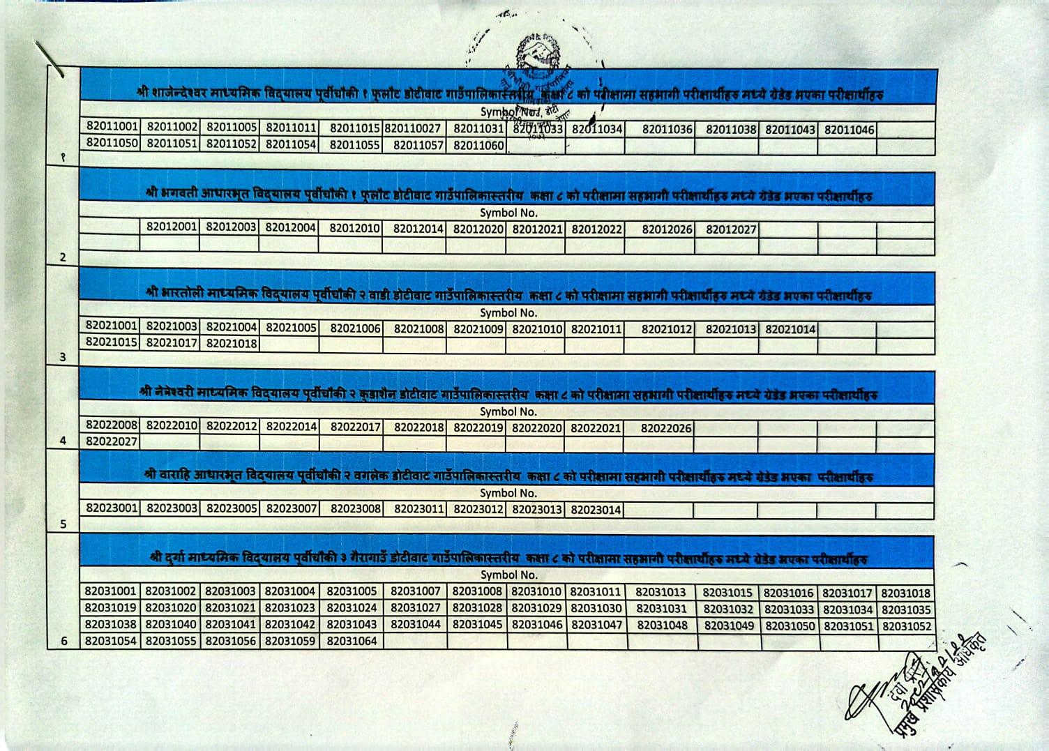 शैक्षिक सत्र २०८२ सालको आधारभूत तह कक्षा ८को परीक्षामा पालिका भरिका सहभागी विद्यालय बाट ७१.१४ प्रतिशत विद्यार्थी उत्तीर्ण भएका हुन् ।